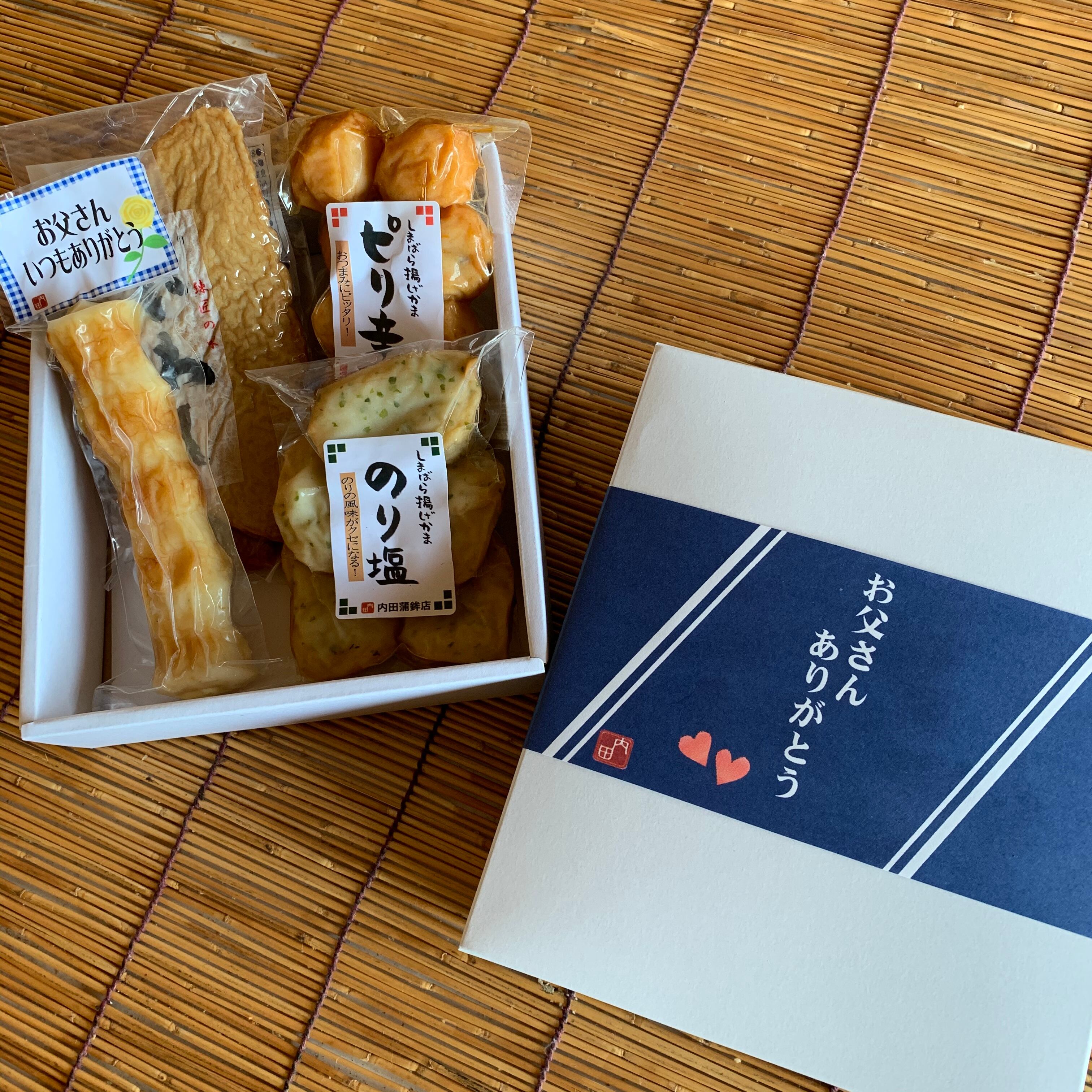 お酒好きなお父さんに、お酒のおつまみにぴったりな蒲鉾をセットにしました。